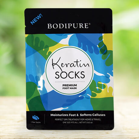 ソックスを袋から出し、2つに分けてください。清潔な足をソックスの中に入れ足首のところでストラップを留めます。中の美溶液で爪周りをやさしくマッサージし、そのまま10-20分程おき、浸透させて下さい。ソックスを取り外し、余った美容液をひざ下まで延ばしてマッサージして下さい。